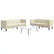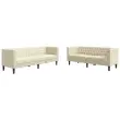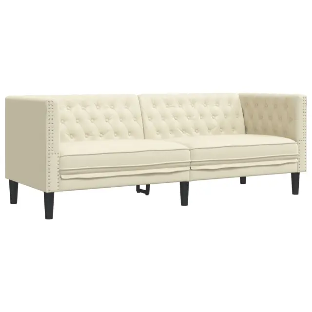 Ta sedežna garnitura chesterfield je odličen prostor za klepetanje, branje, gledanje televizije ali preprosto sprostitev. Namenjen je biti osrednja točka v vašem domu. Dolgotrajno in enostavno vzdrževanje: Umetno usnje je zelo trpežen material, ki je odporen na madeže, zato ga zlahka očistite z vlažno krpo. Njegova gladka površina mu daje eleganten videz, ki spominja na pravo usnje.Udobno sedenje: Kavč je zelo udoben z debelo oblazinjenimi sedeži, nasloni za roke in hrbtnimi blazinami.Stil chesterfield: S klasičnim naslonjalom za hrbet z gumbi in nasloni za roke ter enotno višino naslonjala in naslonov za roke bo popestril vsak prostor, saj zagotavlja slog in udobje.Podporne noge: Fotelj je podprt s čvrstimi nogami, ki zagotavljajo njegovo stabilnost, varnost in trdnost.Barva: KremMaterial: Umetno usnje (75% polivinilklorid, 20% poliester, 5% bombaž), kovina, vezan les, trden lesMaterial polnila: PenaMaksimalna nosilnost: 110 kgPotrebno sestavljanje: DaKavč dvosed:Celotne dimenzije: 174 x 74,5 x 70,5 cm (Š x G x V)Širina sedeža: 158 cmGlobina sedeža: 59 cmVišina sedeža, merjena od tal: 41,5 cmVišina naslonjala za roke od tal: 70,5 cmKavč trosed:Celotne dimenzije: 194 x 74,5 x 70,5 cm (Š x G x V)Širina sedeža: 178 cmGlobina sedeža: 59 cmVišina sedeža, merjena od tal: 41,5 cmVišina naslonjala za roke od tal: 70,5 cmPaket vsebuje:1 x Kavč dvosed1 x Kavč trosed 3209275