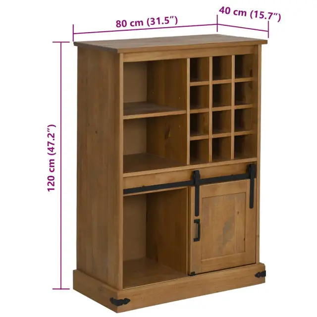 Vinska omara iz serije HALDEN je zasnovana tako, da v vaš bivalni prostor vnese funkcionalnost in estetsko privlačnost. Dolgotrajen material: Trdna borovina je čudovit naraven material, ki je znan po svoji vzdržljivosti in dolgotrajnosti. Njegova ravna tekstura je še privlačnejša, vozli pa zagotavljajo značilen rustikalen videz.Veliko prostora za shranjevanje: V omari so drsna vrata, police in držala za vinske steklenice, kar zagotavlja vsestranske rešitve za shranjevanje, ki poskrbijo, da bo vaše pijača ali osnovne potrebščine urejene in brez nereda. Drsna vrata povečajo zmogljivost omare, zato je učinkovita izbira za vzdrževanje urejenega prostora.Široka uporaba: V njej lahko razstavite svojo zbirko vin ali druge zaklade: omara je idealna za različne prostore, vključno z jedilnicami, dnevnimi sobami in hodniki.Gladka drsna vrata: Vrata s trpežnim kovinskim okovjem in gladkim drsnim mehanizmom zagotavljajo enostaven dostop in lahkotno upravljanje, okovje pa prispeva k estetski privlačnosti enote. Opozorilo:Za preprečitev prevračanja je treba ta izdelek uporabiti s priloženo napravo za pritrditev na steno.Material: Masivni borov les z medeno rjavim premazom, kovinaDimenzije: 80 x 40 x 120 cm (širina x globina x višina)Z dvanajstimi držali za steklenice vina in drsnimi vratiMaks. nosilnost na polico: 20 kgIme območja: HALDENPotrebno sestavljanje: Da 4018445