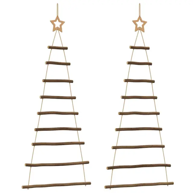 vidaXL Viseča božična drevesca z zvezdami na vrhu 2 kosa 55 x 120 cm naravne veje