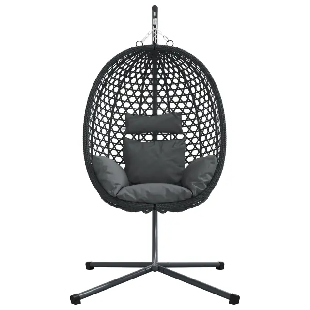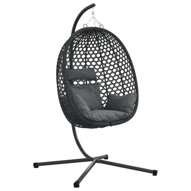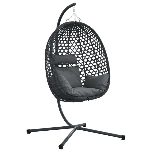 Ta viseči jajčni stol je vse o udobju na prostem. Sprošča in ima moderno zasnovo, ki ga naredi za osrednji del vašega prostora. Ovalna oblika in pletena tekstura ne le dobro izgledata, ampak tudi ustvarjata prijeten kotiček za sproščanje in uživanje na svežem zraku.