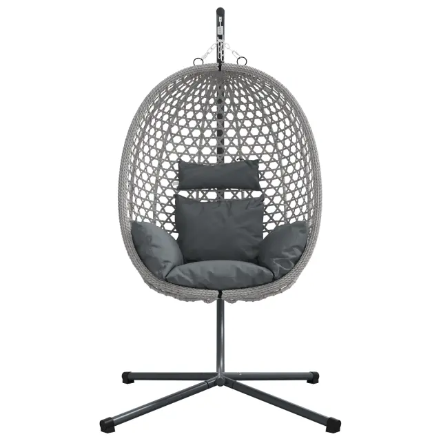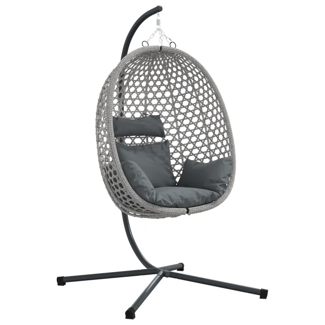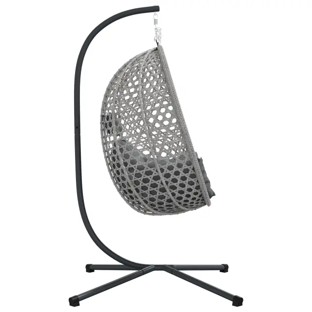 Ta viseča jajčna stolica je popolna za uživanje na soncu in sproščanje na prostem. Nudi udobje s sodobnim pridihom, kar ustvari prijetno mesto na vašem balkonu ali vrtu. Ovalna oblika in zabavna zasnova sta odlični za sprostitev na prostem.