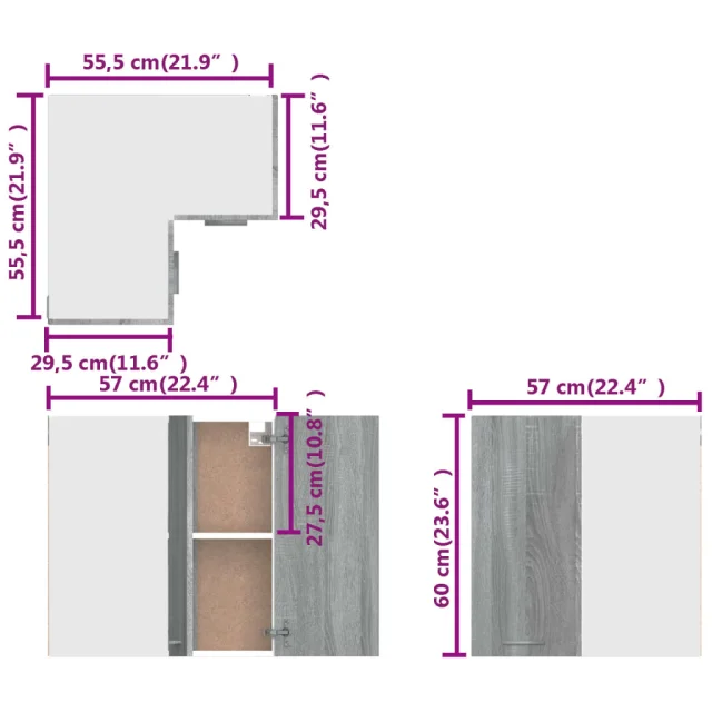 vidaXL Viseča kotna omarica “Lyon” siva sonoma 57x57x60 cm