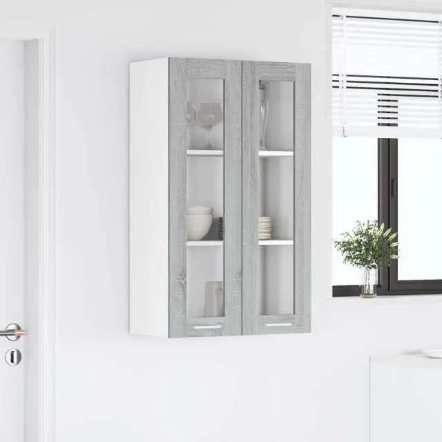 vidaXL Viseča omarica z vrati Riga Siva Sonoma 60 x 31 x 100 cm