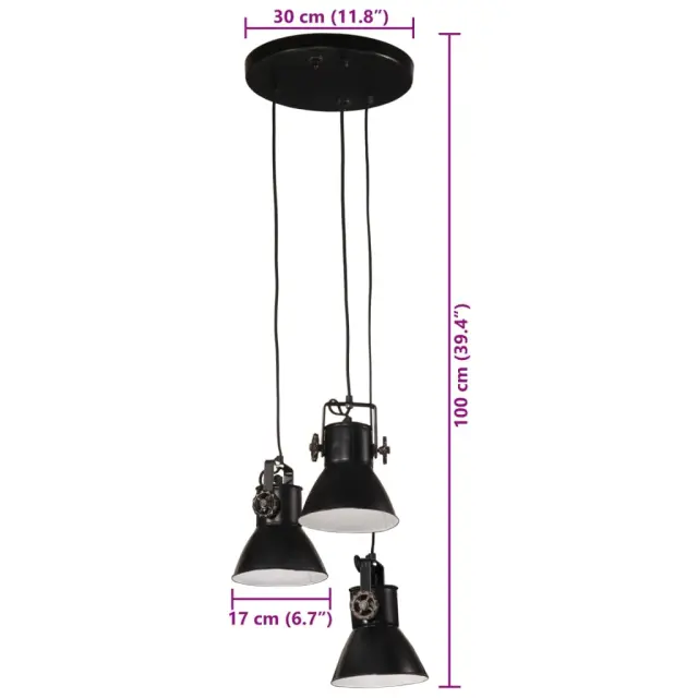 vidaXL Viseča svetilka 25 W črna 30x30x100 cm E27