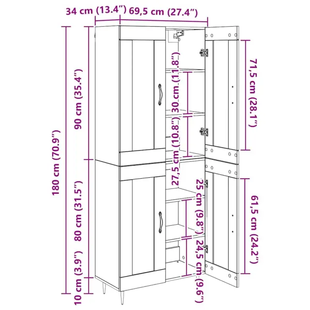vidaXL Visok predalnik 2 pcs Črna Orehovina 69,5 x 34 x 180 cm