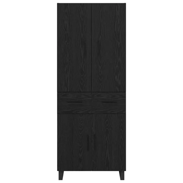 vidaXL Visok predalnik 2 pcs Črna Orehovina Inženirski les in steklo