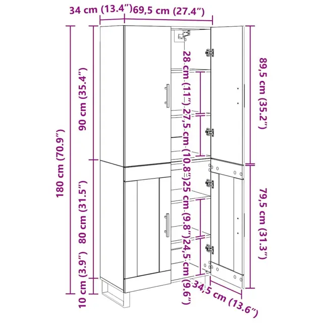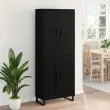 vidaXL Visok predalnik 2 pcs Črna Orehovina Inženirski les in steklo