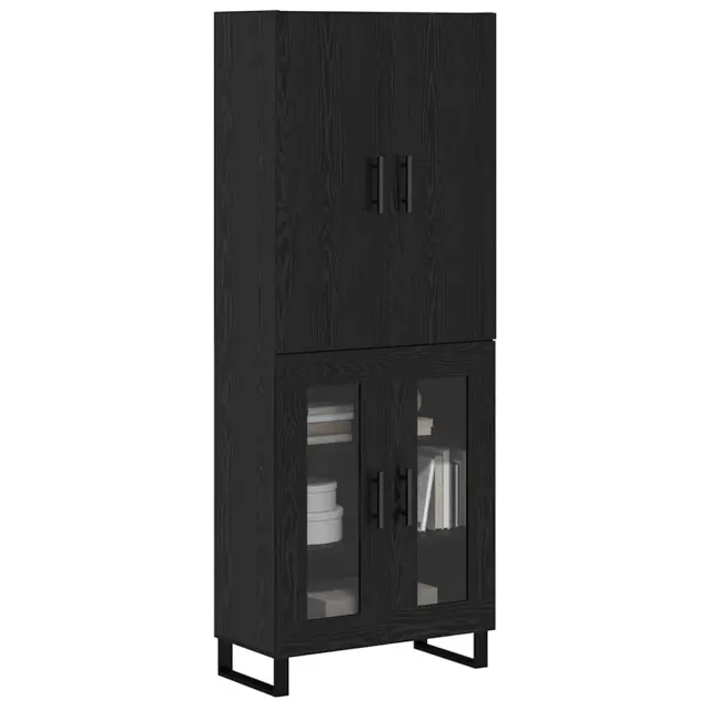 vidaXL Visok predalnik 2 pcs Črna Orehovina Inženirski les in steklo