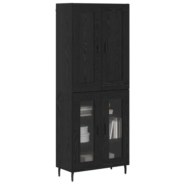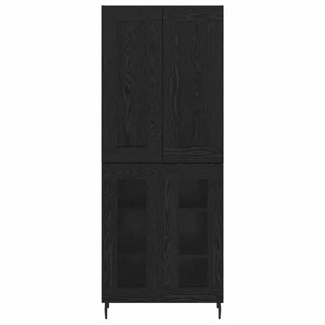 vidaXL Visok predalnik 2 pcs Črna Orehovina Inženirski les in steklo