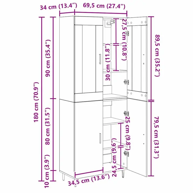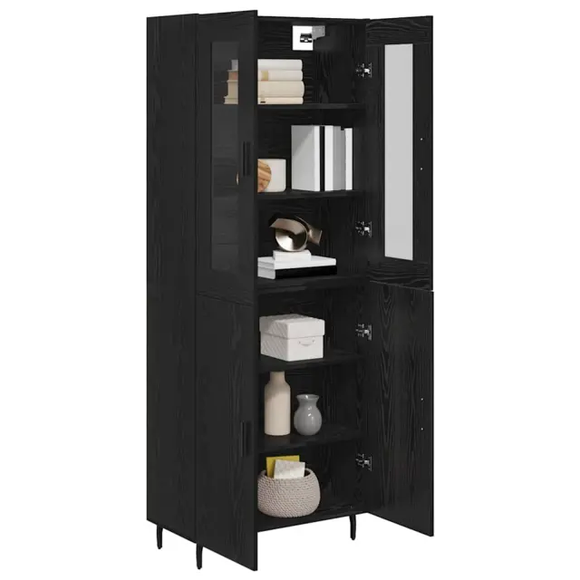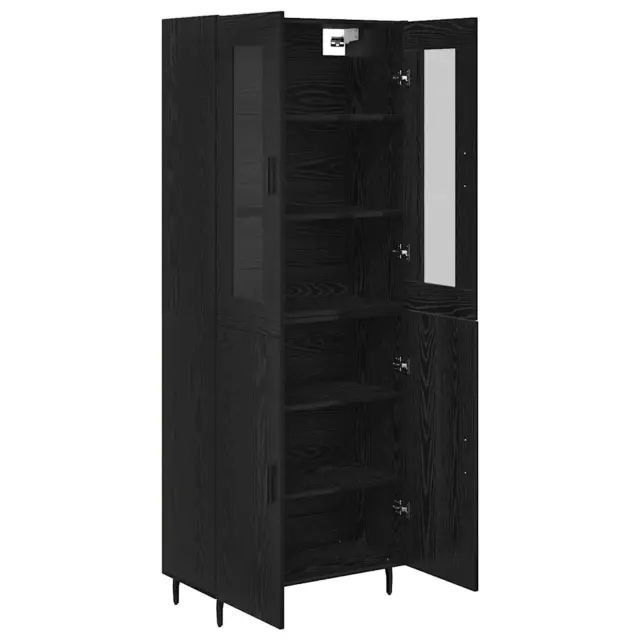 vidaXL Visok predalnik 2 pcs Črna Orehovina Inženirski les in steklo