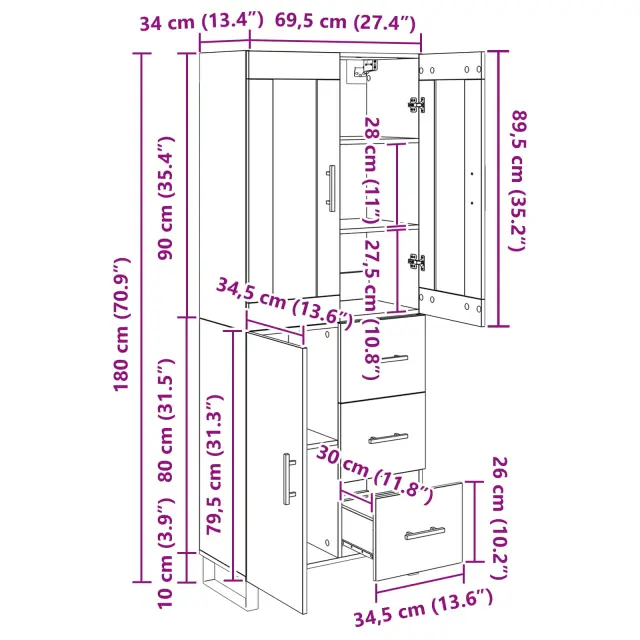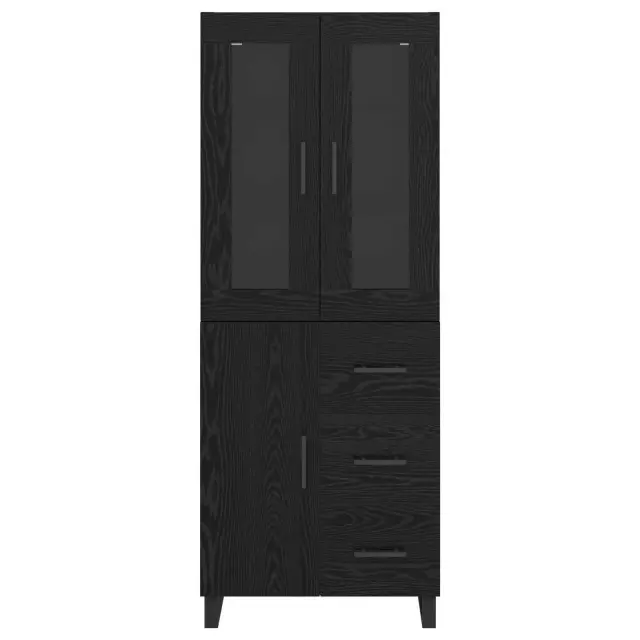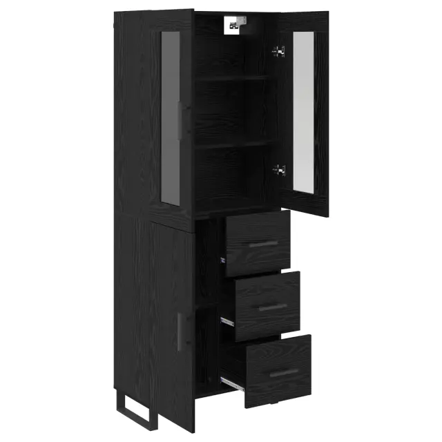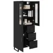 vidaXL Visok predalnik 2 pcs Črna Orehovina Inženirski les in steklo