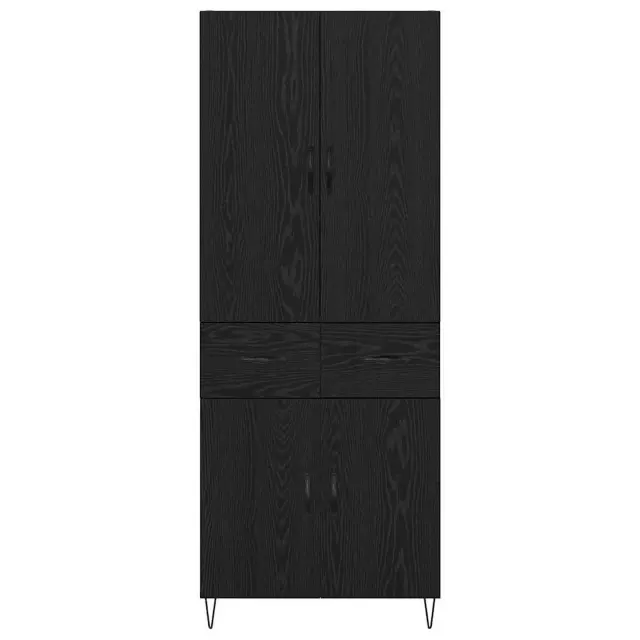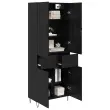 vidaXL Visok predalnik 2 pcs Črna Orehovina Inženirski les in steklo
