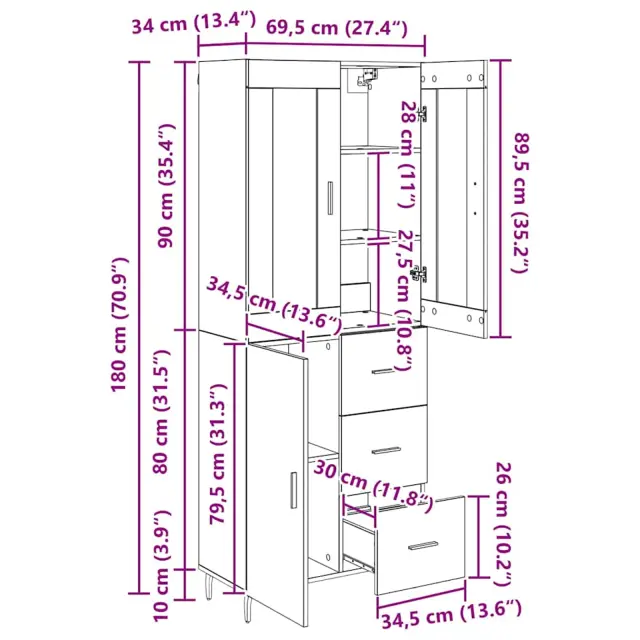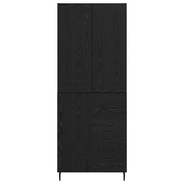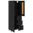 vidaXL Visok predalnik 2 pcs Črna Orehovina Inženirski les in steklo