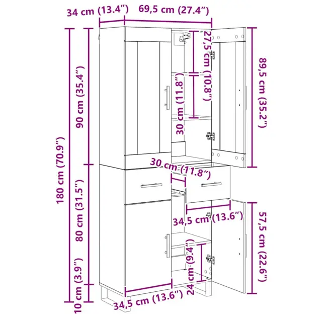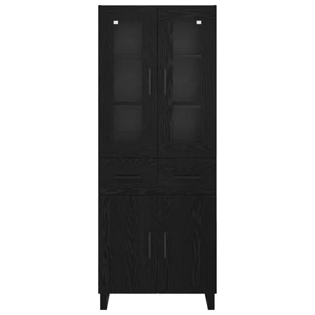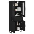 vidaXL Visok predalnik 2 pcs Črna Orehovina Inženirski les in steklo