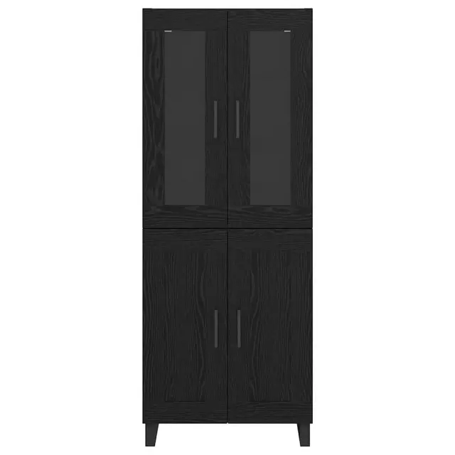 vidaXL Visok predalnik 2 pcs Črna Orehovina Inženirski les in steklo