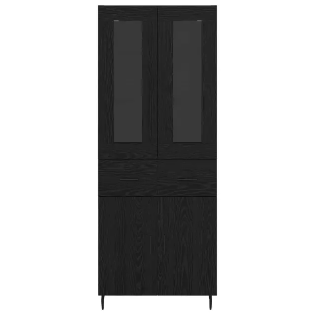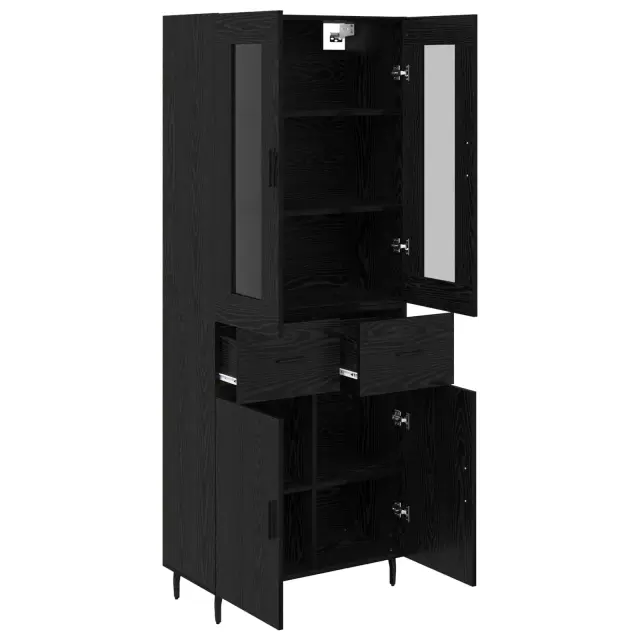 vidaXL Visok predalnik 2 pcs Črna Orehovina Inženirski les in steklo