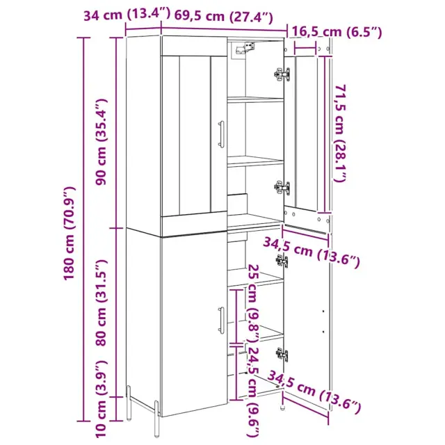 vidaXL Visok predalnik 2 pcs Črna Orehovina Konstruiran les