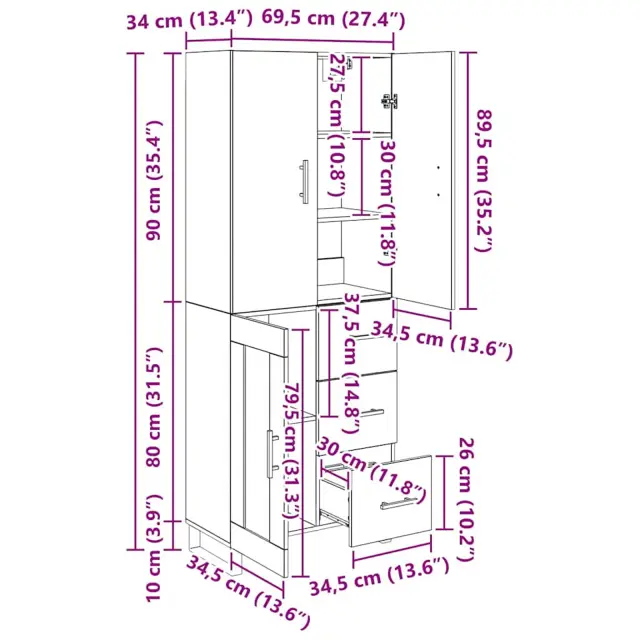 vidaXL Visok predalnik 2 pcs Star les Inženirski les in steklo