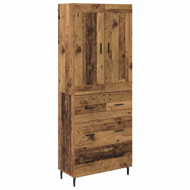 vidaXL Visok predalnik 2 pcs Star les Inženirski les in steklo