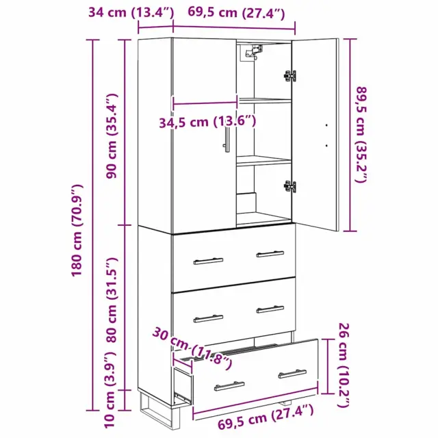 vidaXL Visok predalnik 2 pcs Star les Inženirski les in steklo