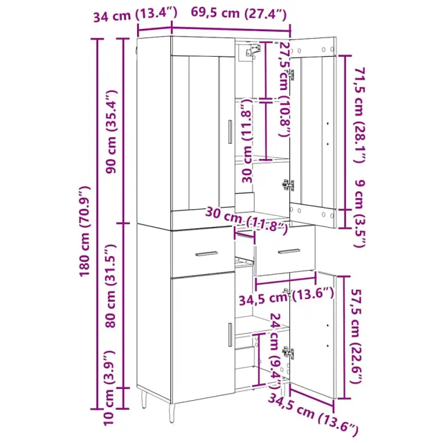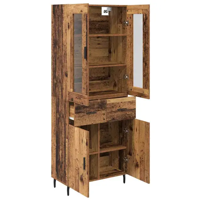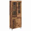 vidaXL Visok predalnik 2 pcs Star les Inženirski les in steklo