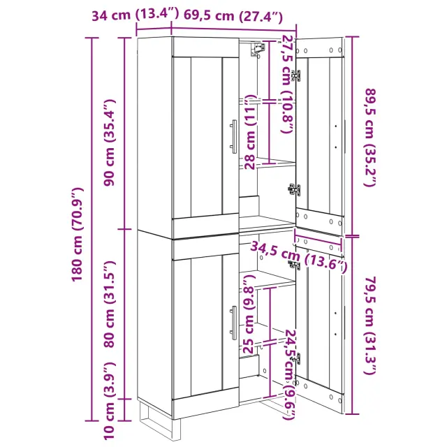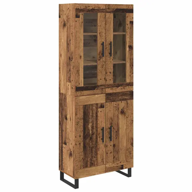 vidaXL Visok predalnik 2 pcs Star les Inženirski les in steklo