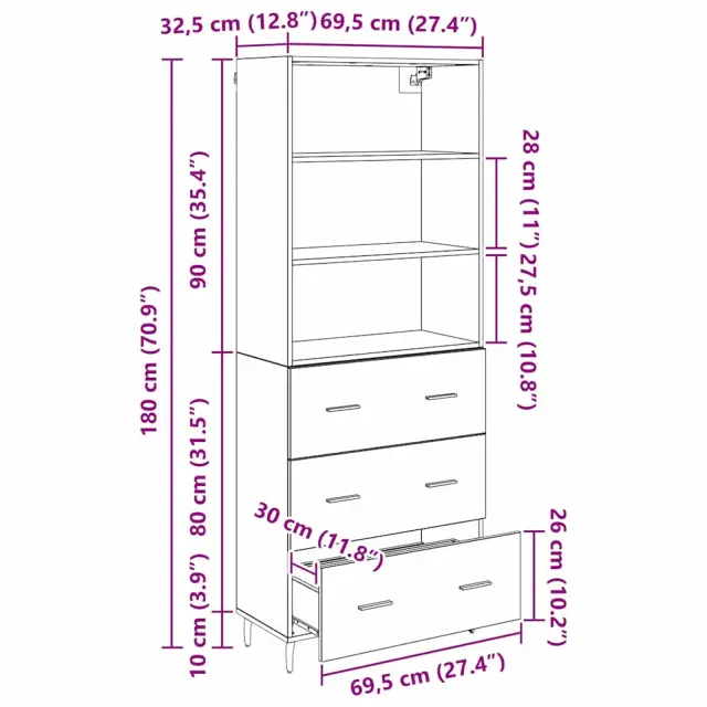 vidaXL Visok predalnik 2 pcs Star les Inženirski les in steklo