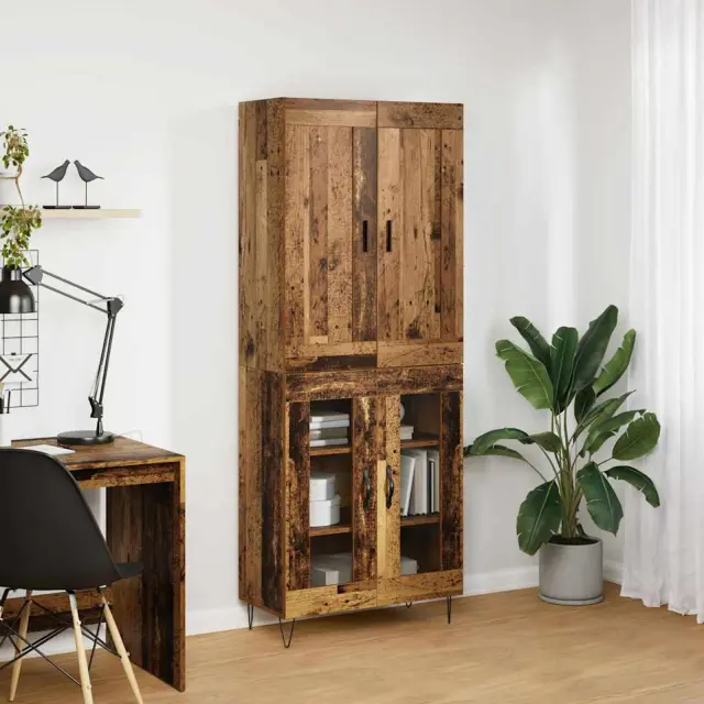 vidaXL Visok predalnik 2 pcs Star les Inženirski les in steklo