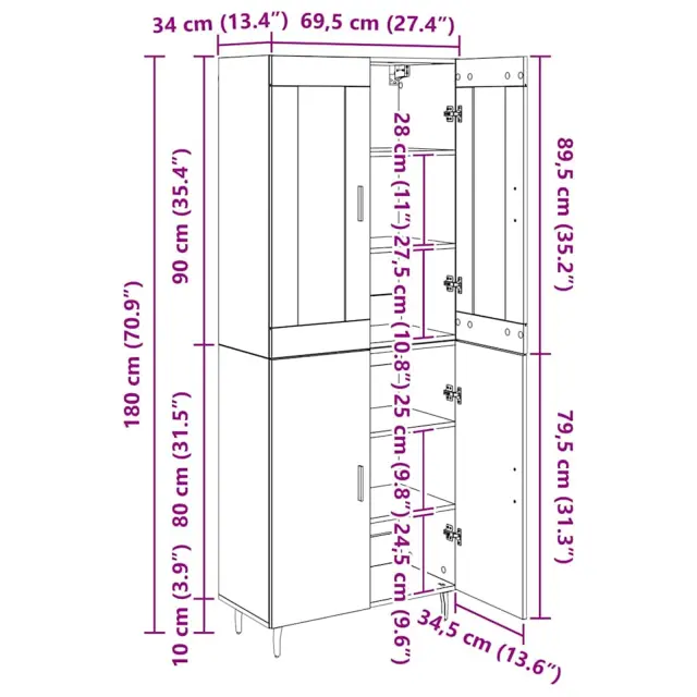 vidaXL Visok predalnik 2 pcs Star les Inženirski les in steklo