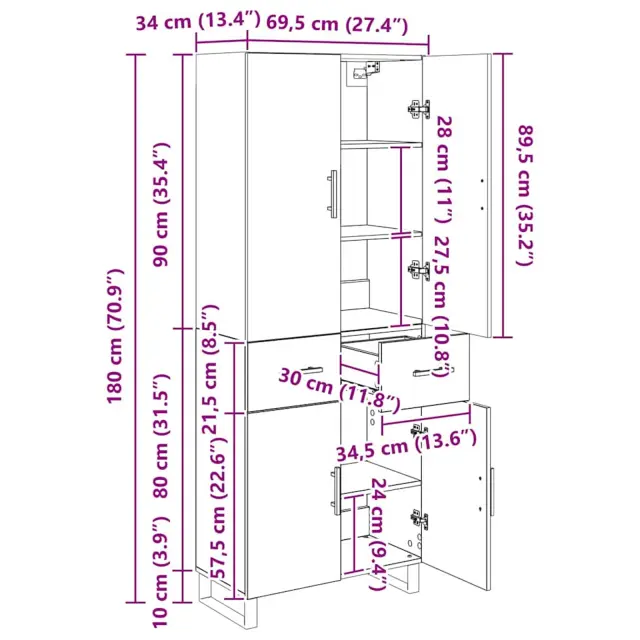 vidaXL Visok predalnik 2 pcs Star les Inženirski les in steklo