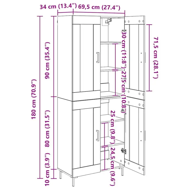 • 1 x vrh za visoko omaro: 69,5 x 34 x 90 cm (DxŠxV)