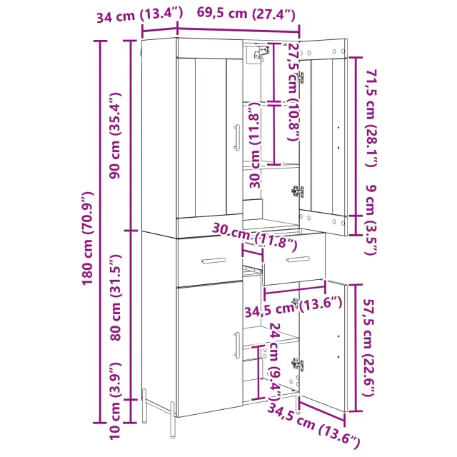 vidaXL Visok predalnik 2 pcs Star les Konstruiran les