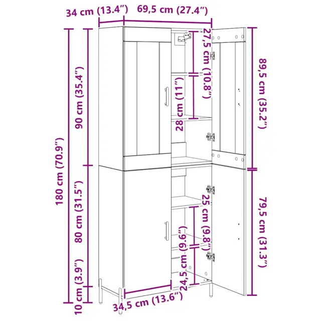 vidaXL Visok predalnik 2 pcs Star les Konstruiran les