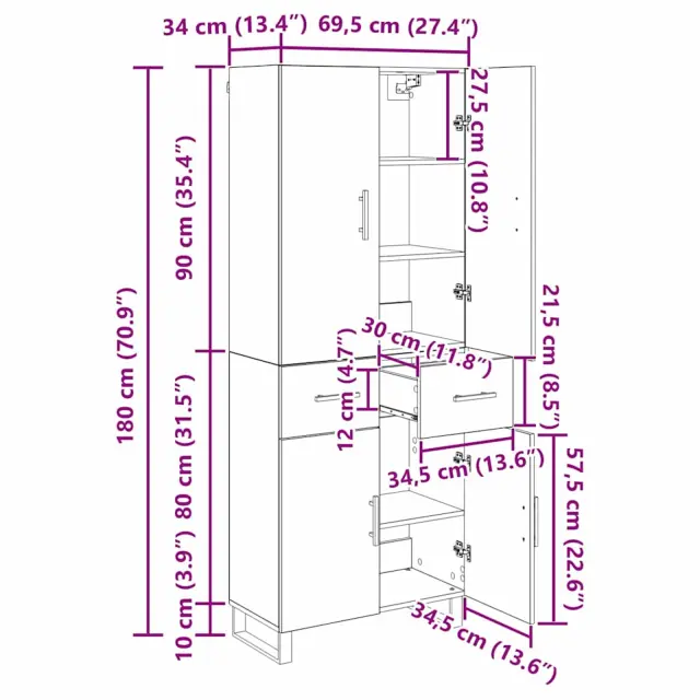 • 1 x Vrh za visok omarico: 69,5 x 34 x 90 cm (D x Š x V)