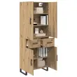 vidaXL Visok predalnik 2 pcs Umetni hrast Inženirski les in steklo