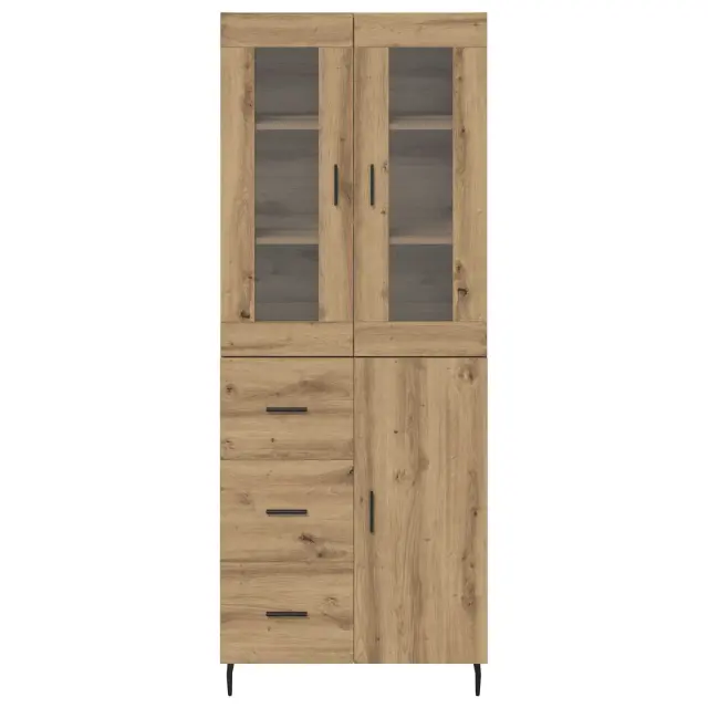 vidaXL Visok predalnik 2 pcs Umetni hrast Inženirski les in steklo