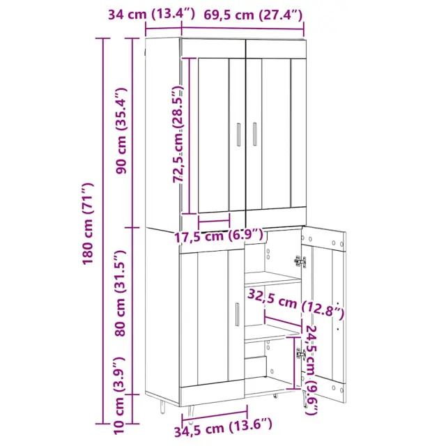 • 1 x Vrh za visok omarico: 69,5 x 34 x 90 cm (D x Š x V)