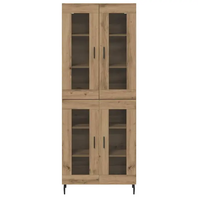 vidaXL Visok predalnik 2 pcs Umetni hrast Inženirski les in steklo