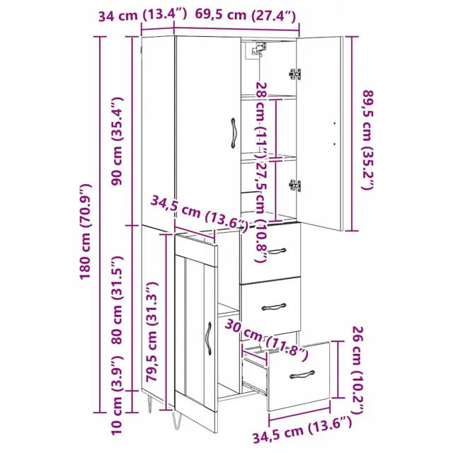 • 1 x vrh za visok predal: 69,5 x 34 x 90 cm (D x Š x V)