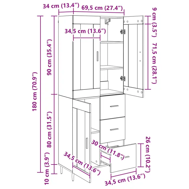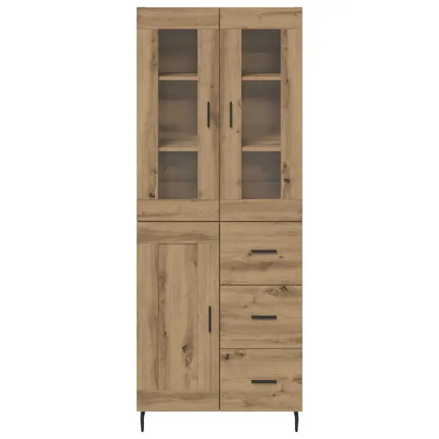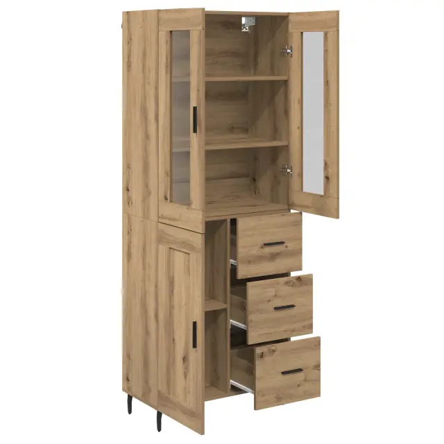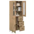 vidaXL Visok predalnik 2 pcs Umetni hrast Inženirski les in steklo