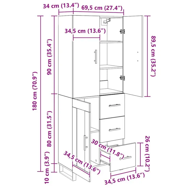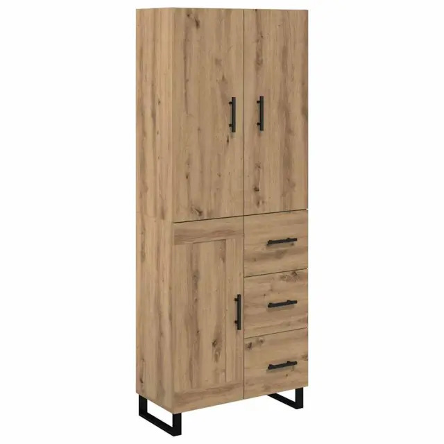 vidaXL Visok predalnik 2 pcs Umetni hrast Inženirski les in steklo