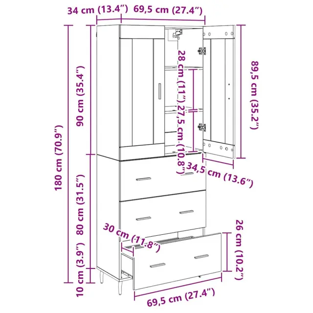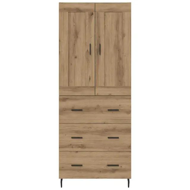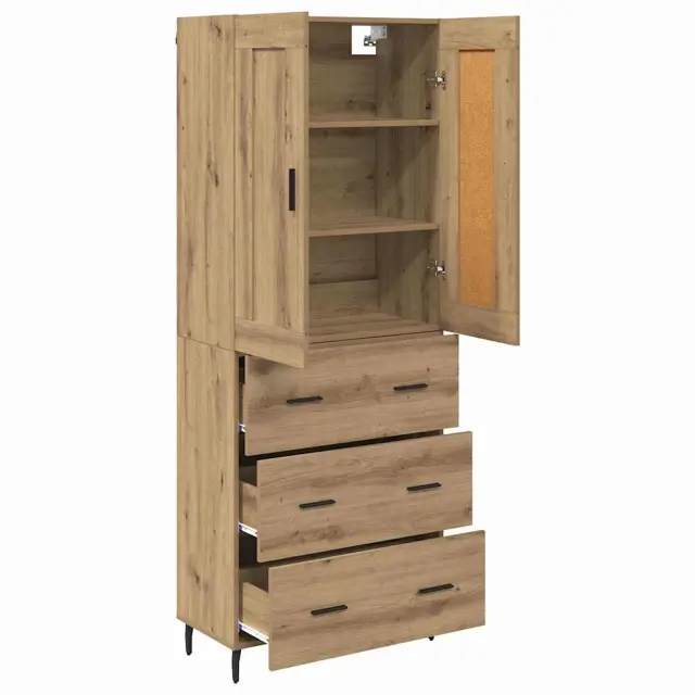 vidaXL Visok predalnik 2 pcs Umetni hrast Inženirski les in steklo