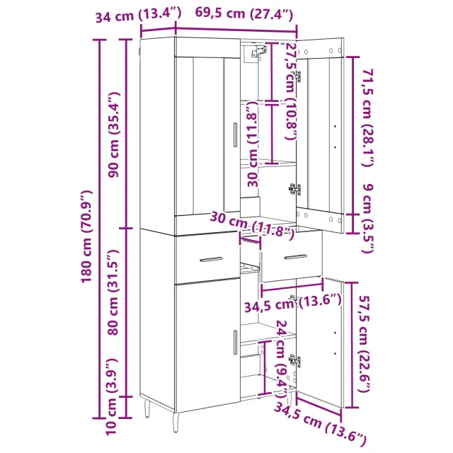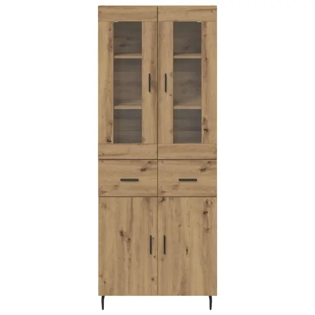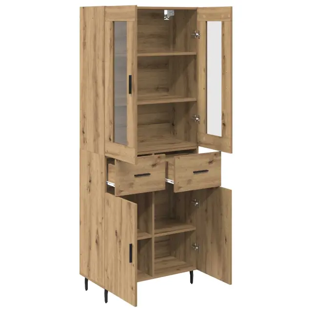 vidaXL Visok predalnik 2 pcs Umetni hrast Inženirski les in steklo