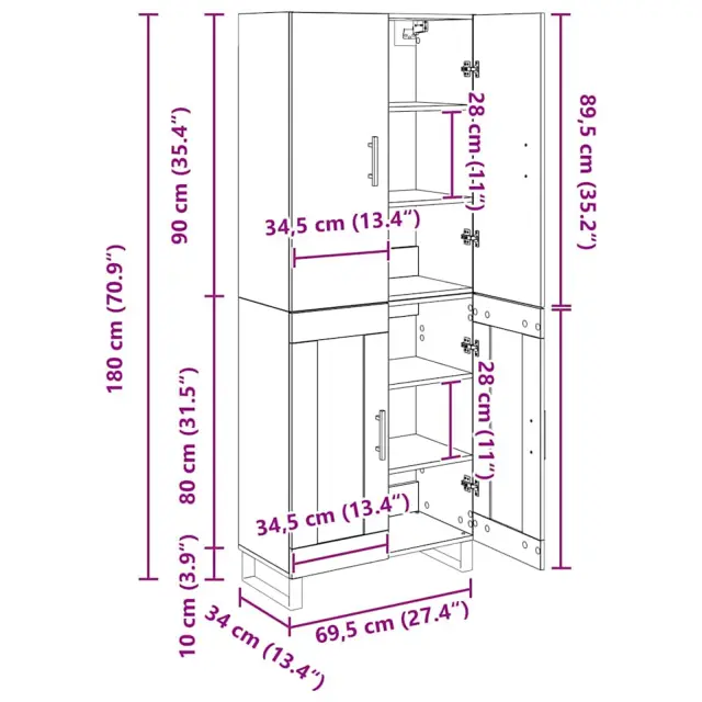 vidaXL Visok predalnik 2 pcs Umetni hrast Inženirski les in steklo