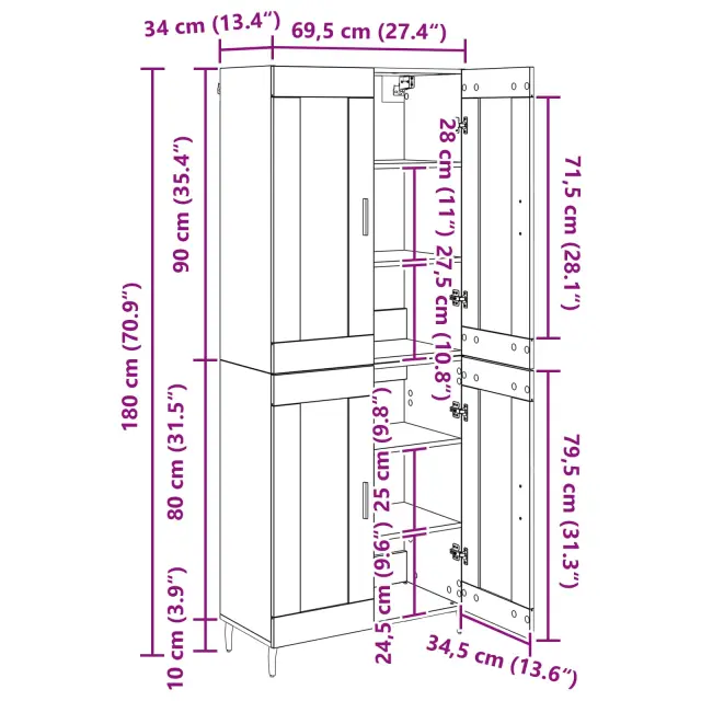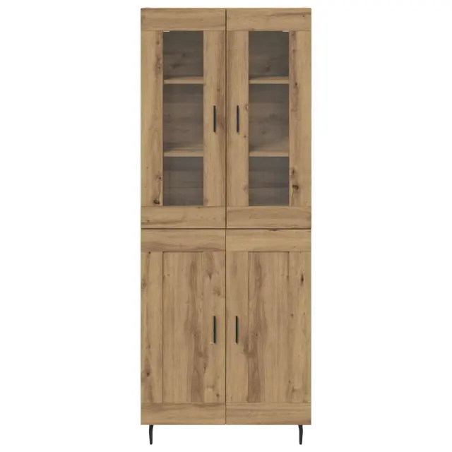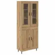 vidaXL Visok predalnik 2 pcs Umetni hrast Inženirski les in steklo