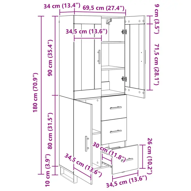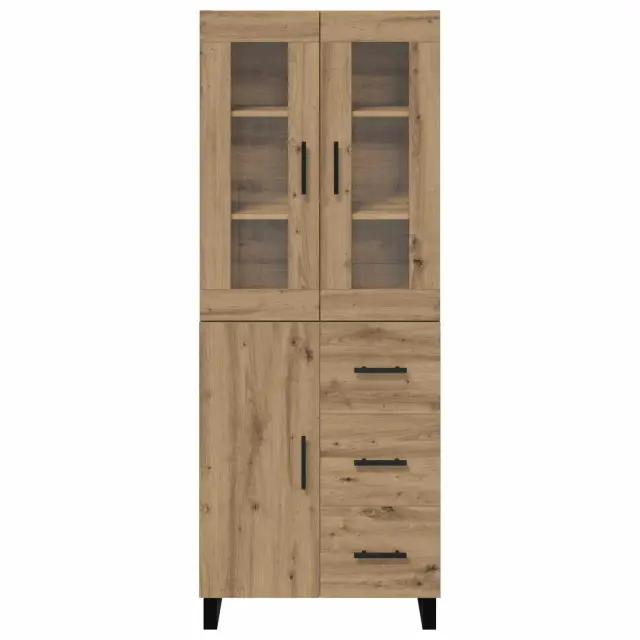 vidaXL Visok predalnik 2 pcs Umetni hrast Inženirski les in steklo