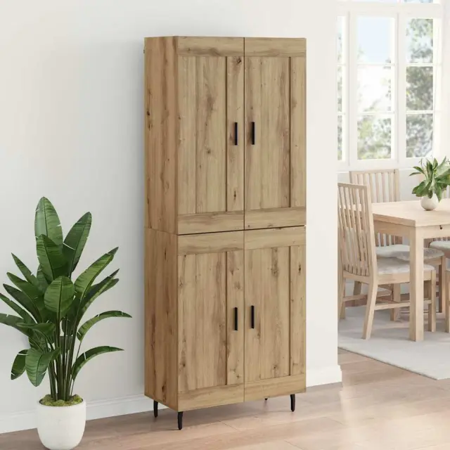 vidaXL Visok predalnik 2 pcs Umetni hrast Inženirski les in steklo