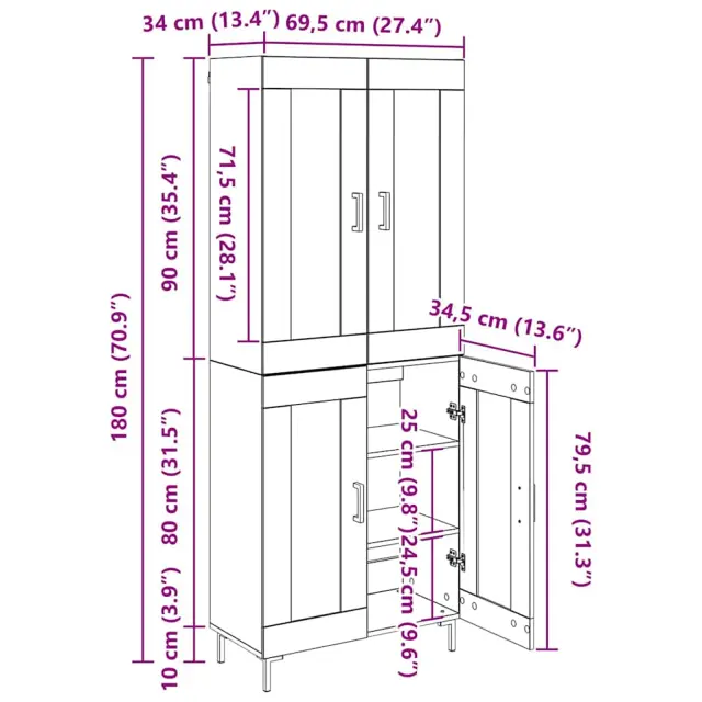 vidaXL Visok predalnik 2 pcs Umetni hrast Konstruiran les