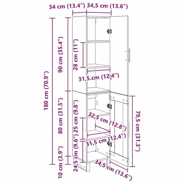 • Splošne dimenzije: 34,5 x 34 x 180 cm (Š x G x V)