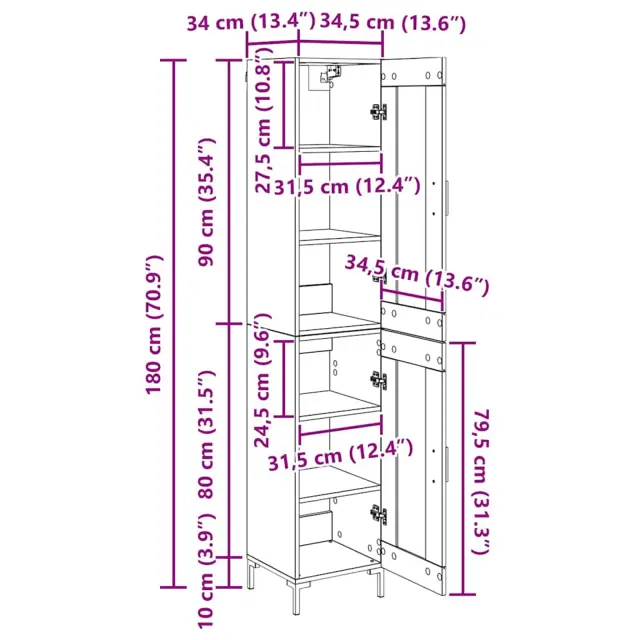 vidaXL Visok predalnik Črna Orehovina 34,5 x 34 x 180 cm